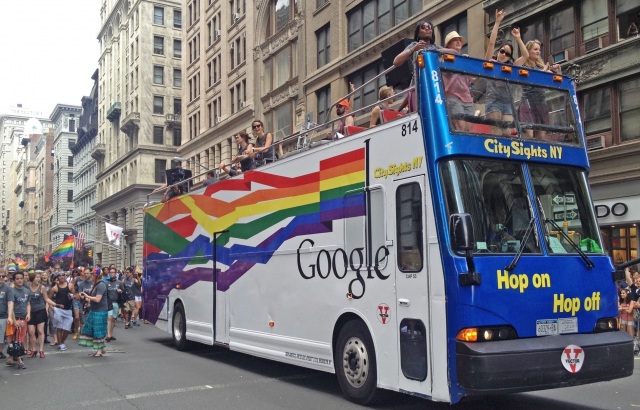 We encourage people to bring their whole selves to work. And this month Googlers, Gayglers (gay Googlers), and their families and friends took this spirit to the streets in Pride parades and celebrations around the globe. In Sao Paulo, a group of 50 marched as a Google contingent for the first time ever. In San Francisco, more than 1,000 Googlers and allies marched (nearly doubling the number of people we had in 2011!). In New York, more than 700 of our friends and colleagues took over 5th Avenue marching alongside our double-decker Pride bus. And this weekend in Singapore, we’re sponsoring the Pink Dot celebration for the second consecutive year.