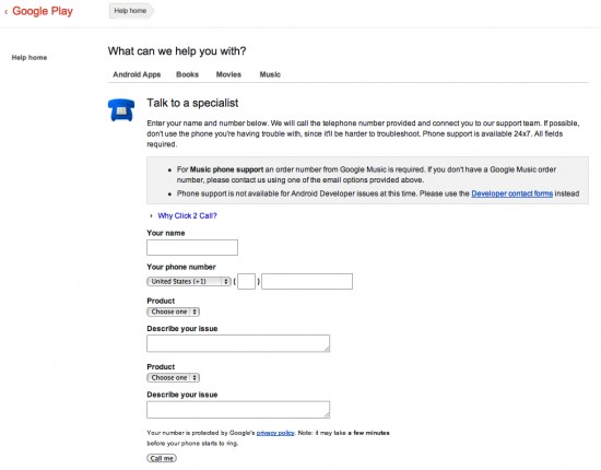 Until now, that is. The ever-popular search engine just debuted 24/7 technical support for Google Play users only. The most interesting part is that Google will now call you to provide answers. That’s right, no more are the days of automated support lines and endless waiting. Just fill out a form on the website, submit the form, and then wait for the phone to ring.