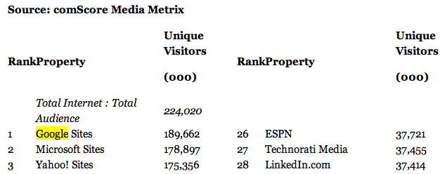 Digital world measurer comScore released its monthly analysis of United States-based web activity for March 2012 today, and Google debuted at No. 1 in two of the survey’s categories.