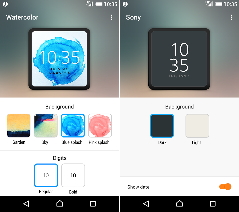 There are three basic watch faces that are new thanks to the app: Classic, Watercolor, and Sony. The first is a traditional analog face, the second sports — as you might have guessed — some colorful designs, and Sony is a very basic digital face.
