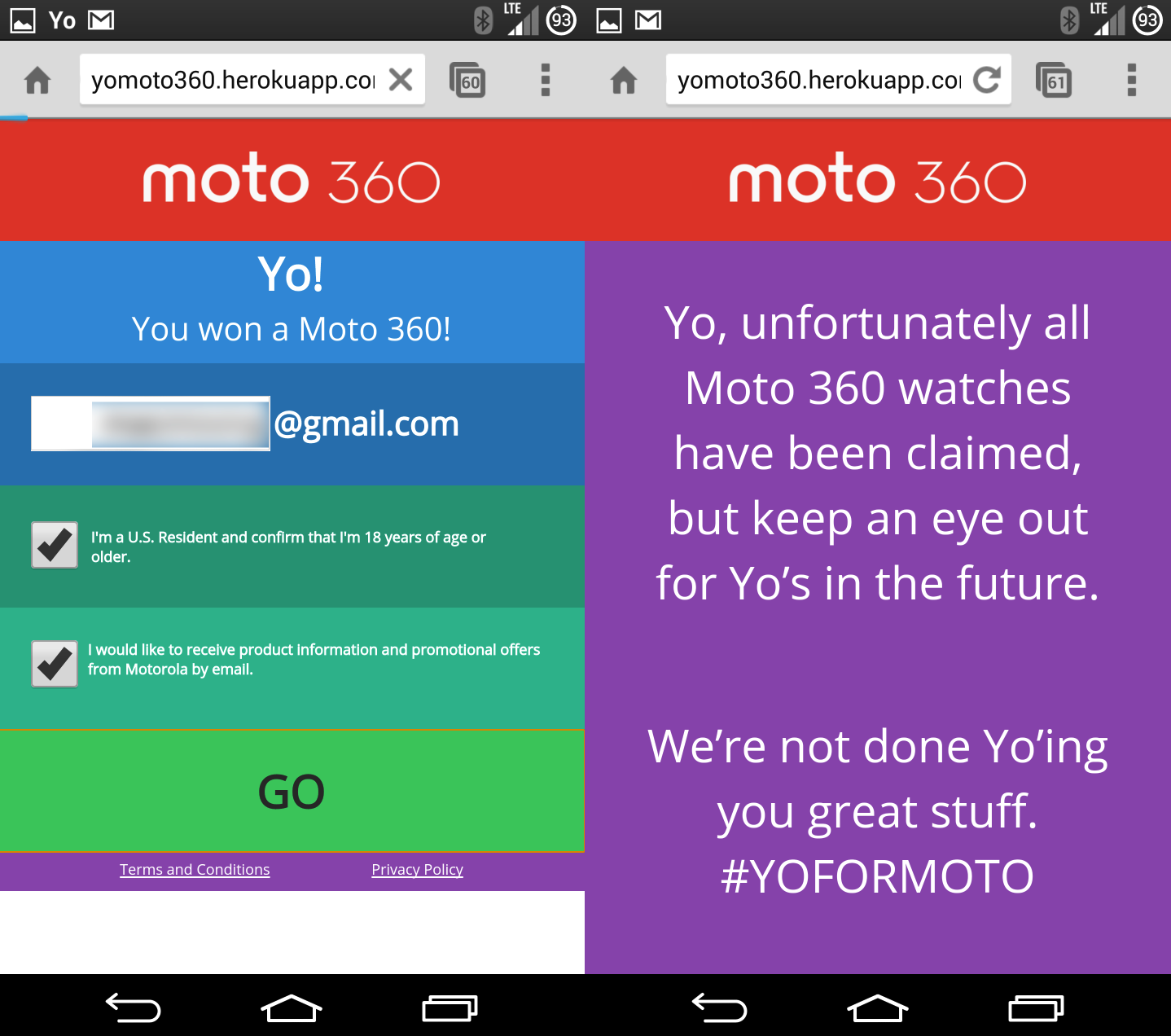 Motorola would then send a Yo link to all entrants and the first 20 people to click the link would win a Moto 360. Well, that’s kind of how it seemed, but that wasn’t actually the case. Motorola successfully sent a Yo link to all who initially entered, but it was a bit more complicated than just clicking a link.