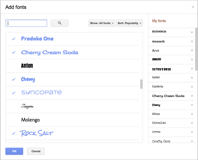 To select the new fonts, click on the font menu, and then select “Add fonts” at the bottom. This will open a menu to all the Google Web Fonts available. Users can narrow their search for the perfect font by alphabetical order, date added, and “trending.” Once a font is selected, users are free to implement them in Google Docs, especially in one of the service’s 60 new templates that were unveiled today.