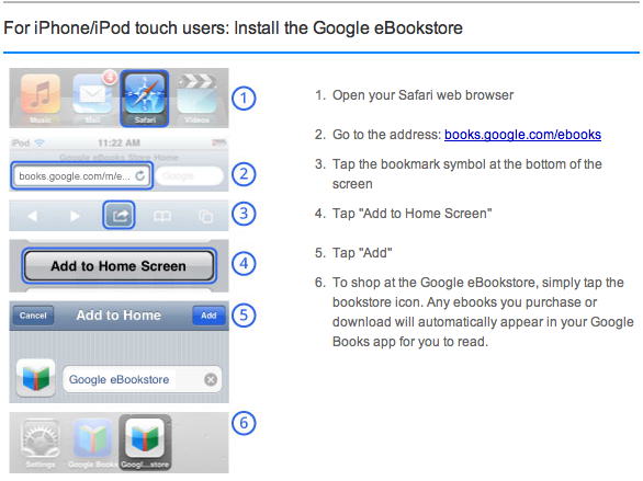 Google has just notified Google Books users via email that they can now purchase books through Google’s eBookstore website. This workaround comes after Apple shut off Google’s in-app book store on the Google Books app — available on the iTunes App Store. As seen in the image sent with the email, Google suggests you add this website to your iOS device’s homepage. Email from Google: