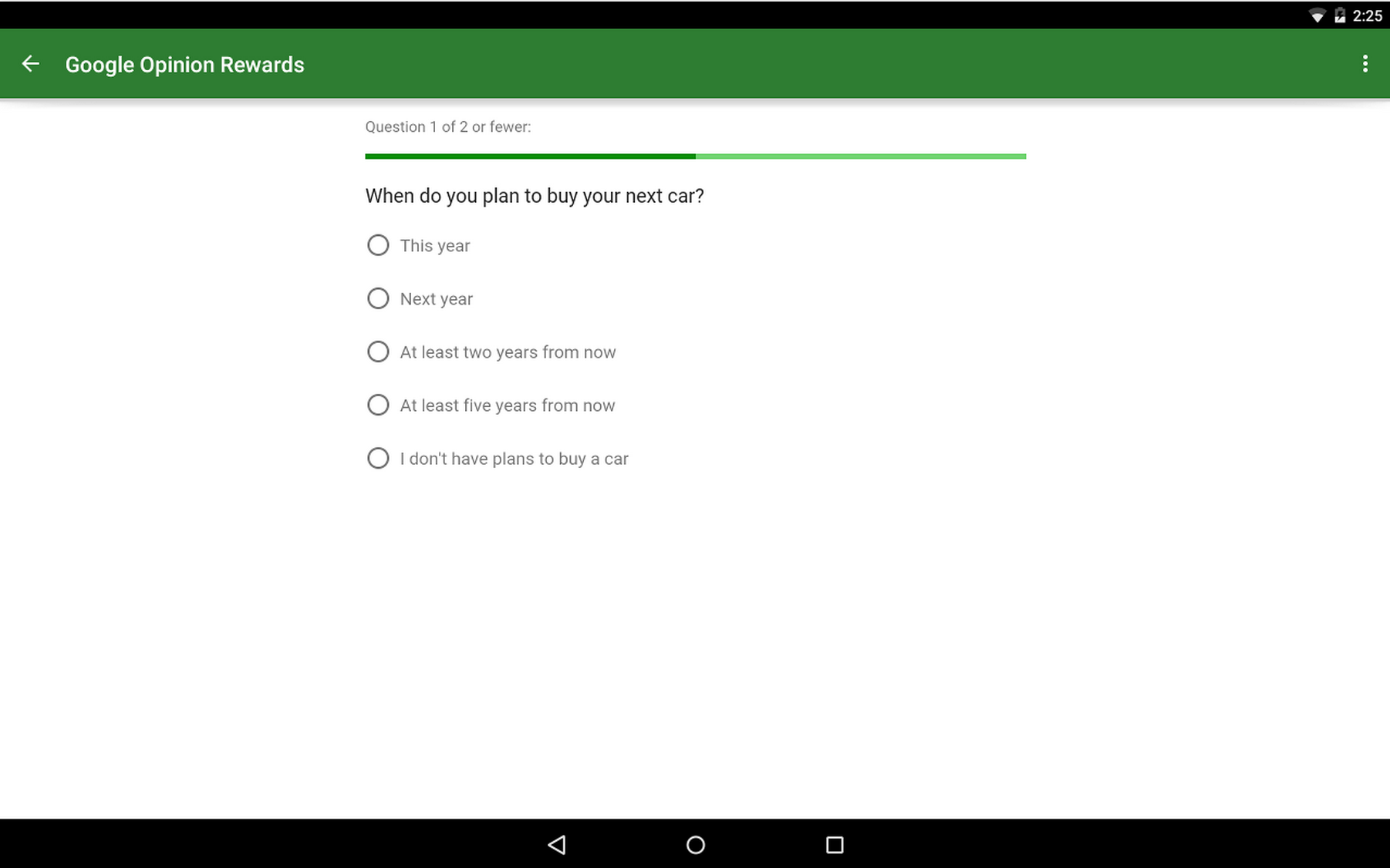 The survey questions that you may be asked to answer through Opinion Rewards, which can be alerted to you through push notifications, are sourced from market researchers who run the surveys through Google Consumer Surveys. Consumer Surveys gives these marketers some of the same tools and platform reach that those advertising products and services through Google get but to instead use to get answers to questions.