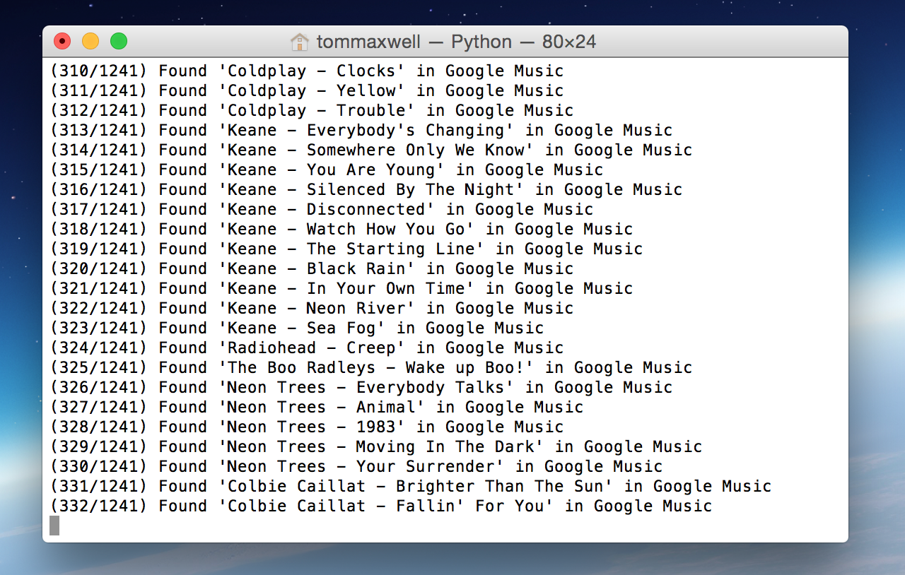 Of course not all music that’s available on Spotify may be available on Google Play Music All Access, but I’ve found that the overlap is pretty close. Also, using PyPortify is technically against the terms of service of both services, so do it at your own risk, but we haven’t heard of anything bad happening as a result of using this service. Enjoy!