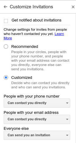In the new options, you can choose to go with Google’s recommended system, or you can opt to customize three different categories of incoming messages yourself. If you’d like, you can require that only invitations can be sent — regardless of if the sender has your email/phone number or not. Or, if you’re more of a free spirit, you can conversely use this opportunity to open up your inbox to any and all messages and allow everyone to contact you directly. Personally, I like the way Google has things set up. But I also like options. Options are good.