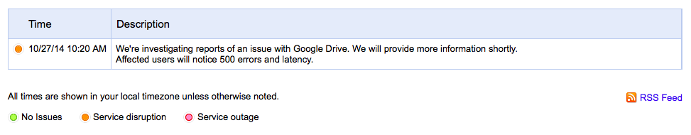 We’re investigating reports of an issue with Google Drive. We will provide more information shortly.
