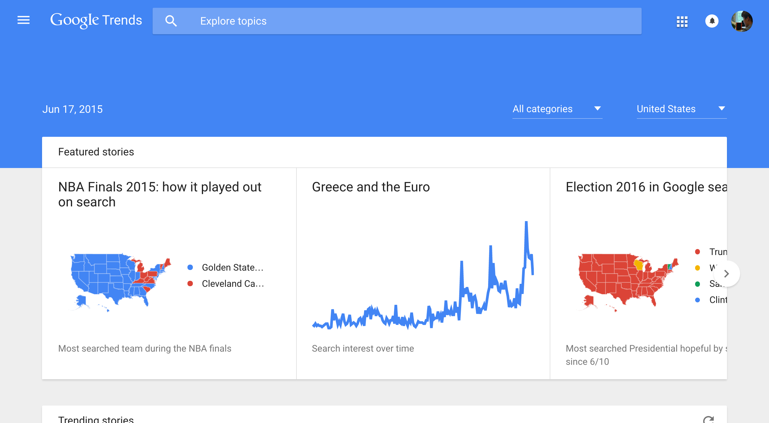 Google has today pushed an update to its Trends product, which it says is the biggest expansion to the search analysis product since 2012. The goal with this update, the company says, is to provide a “faster, deeper and more comprehensive view of our world” through real-time data on everything from the FIFA scandal to Donald Trump’s presidential campaign kick-off.