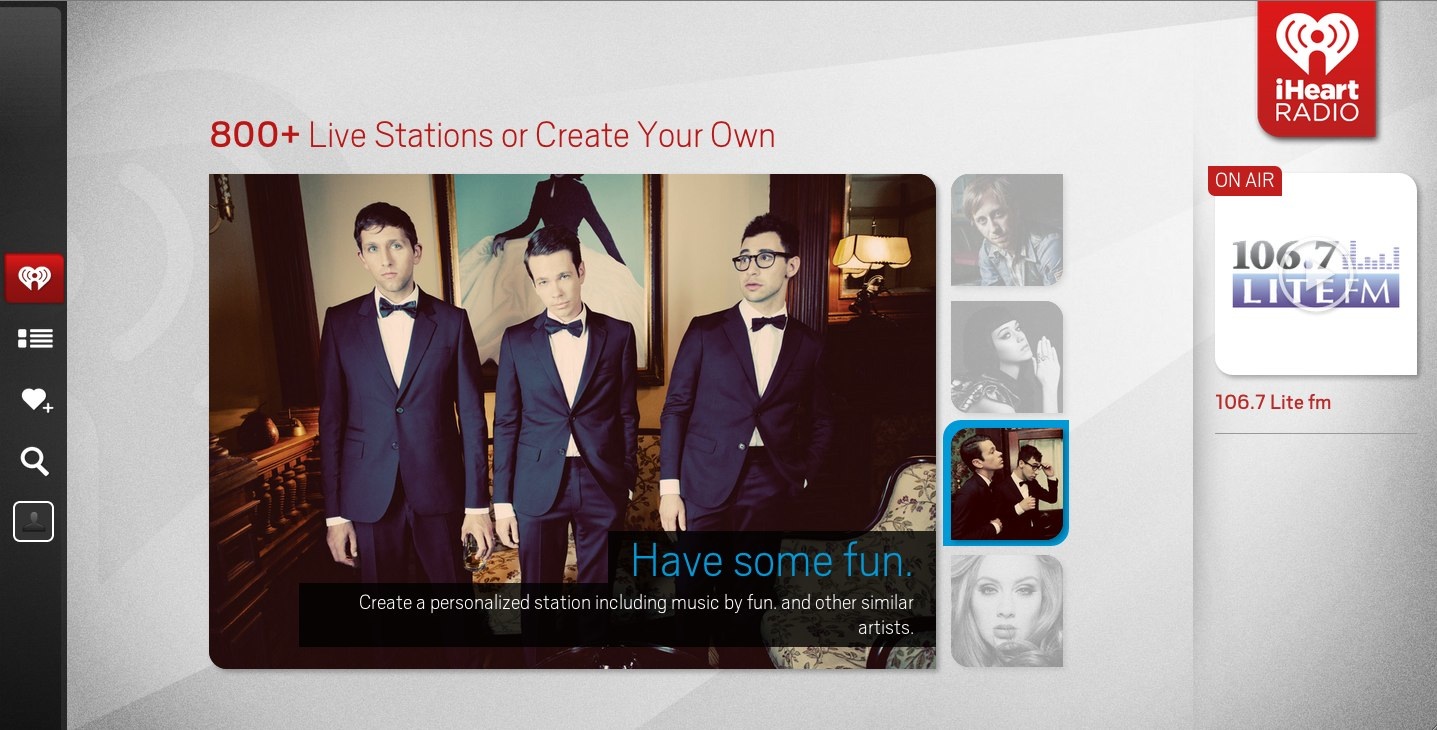 iHeartRadio is a four-year-old website and mobile radio network that aggregates local radio brands, personalities, and on-demand content. The new Google TV app offers 800 live stations and the ability to create a custom station based on an artist or track. It also sports high-resolution imagery, quick jump options, and seamless navigation for finding local broadcasts by genre or location. Moreover, the app “dims the lights,” so users can listen to music without a blaring screen in the room.