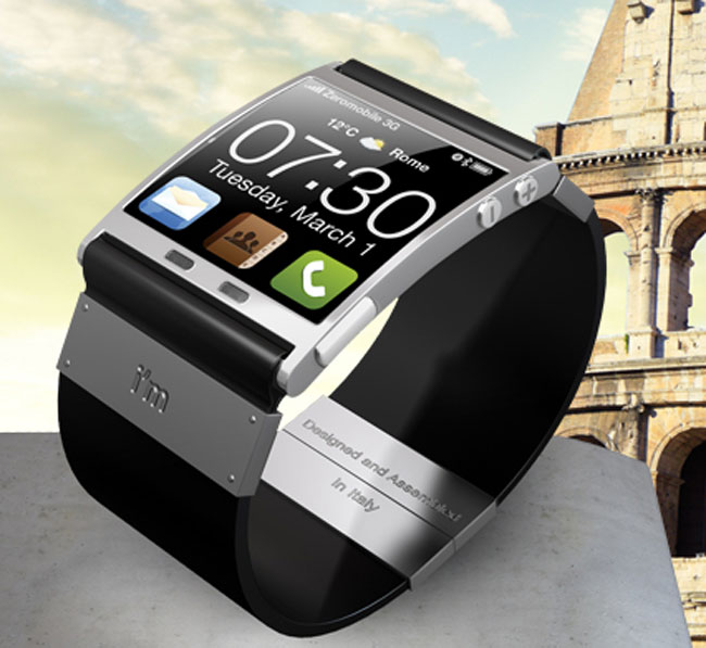 I’mWatch is a device that appears to be focused on connecting to your phone in order to provide quick reference to everything from incoming calls to emails, and Facebook and Twitter notifications. It does this by fastening an iPod nano-like, fully functional touch screen to the traditional wristwatch form factor. The site even mentions the ability to “touch, drag, swipe or pinch”.