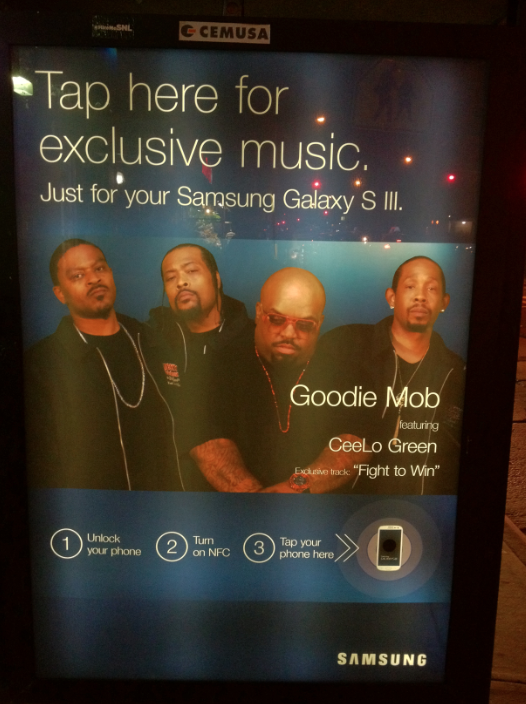 NewGeekGuide already spotted two of Samsung’s interactive posters. The first ad is located in New York City’s Lower East Side and offers a free Goodie Mob and CeeLo Green song (as seen in the picture above).