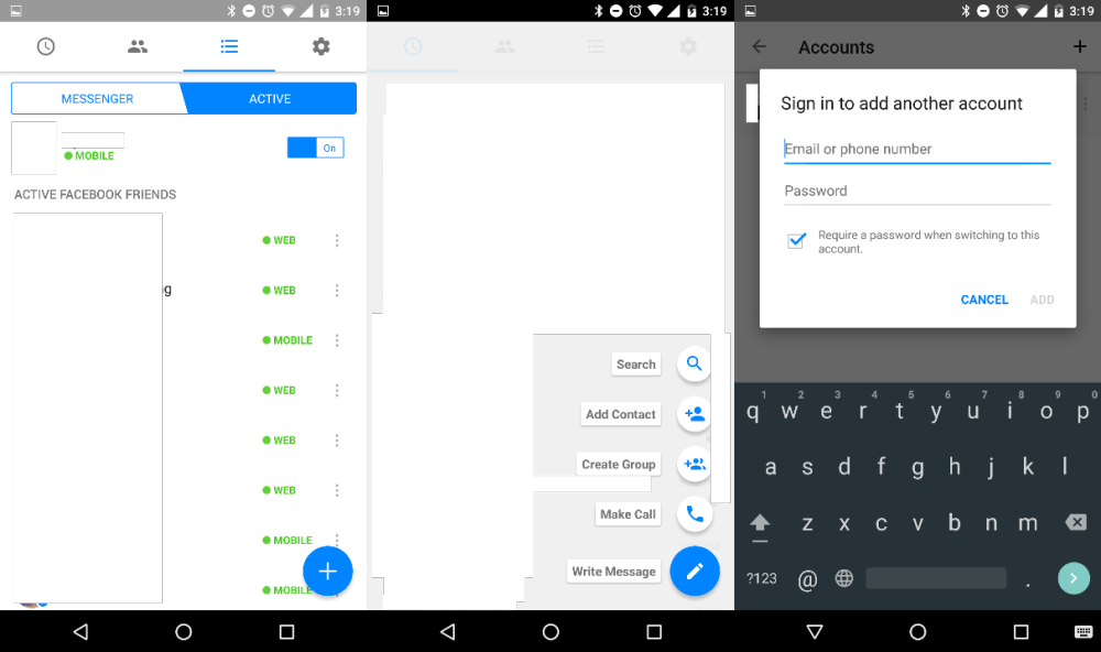 Facebook is testing a minor Material Design-inspired refresh for its messaging app, Messenger. The addition of the floating action button (FAB) is the biggest and most notable change, but there are some other minor design tweaks and a new feature that allows multiple user sign-ins.