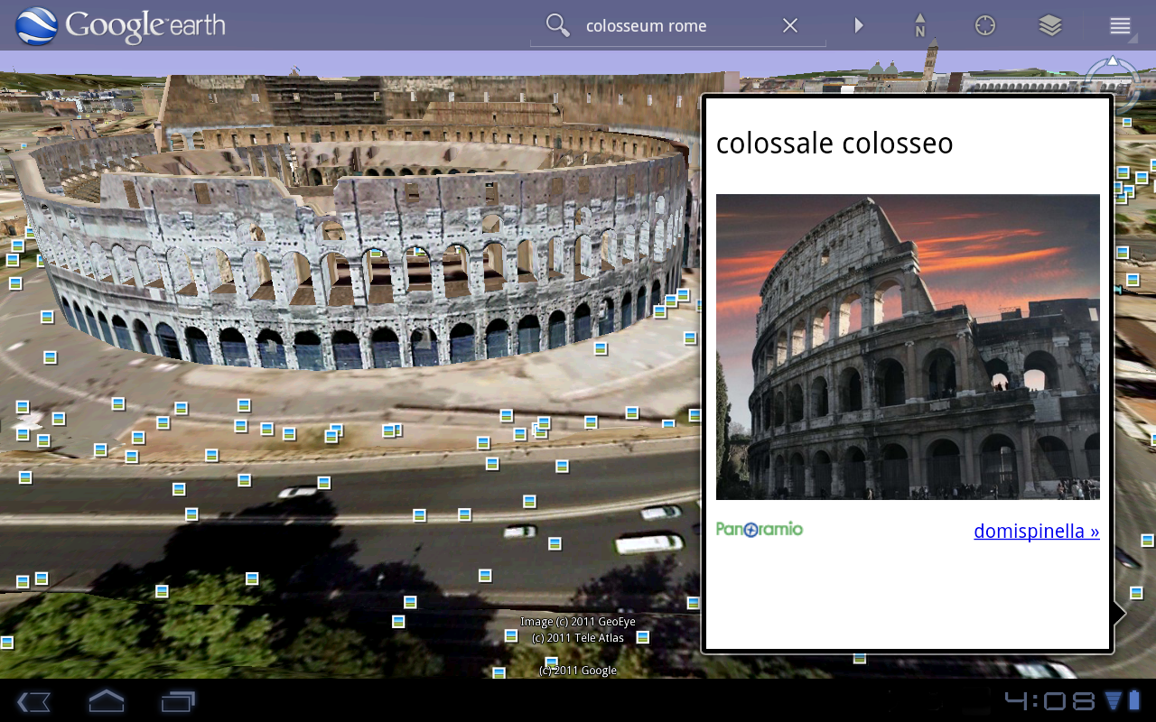 Google has optimized the Google Earth service for Android Honeycomb-driven tablets, tailoring the user experience and features to a larger canvas compared to that of smartphones. “It makes Earth look better than ever on your tablet”, Google said. “It’s like moving to IMAX”, product manager Peter Birch joked in a blog post.