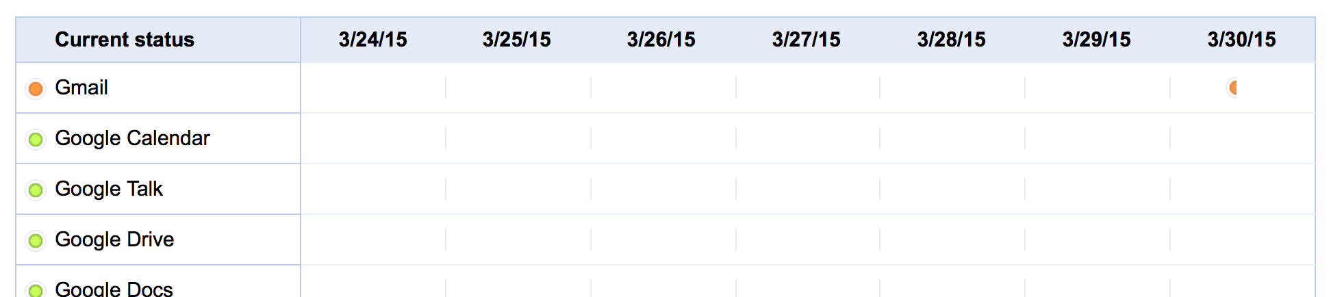 Google updated its Apps Status website to reflect the outage that was first reported earlier this morning at 6:49 AM EST. The company last checked in at 9:30 AM noting it’s “continuing to investigate this issue.” It’s unclear at this point how many users are affected: