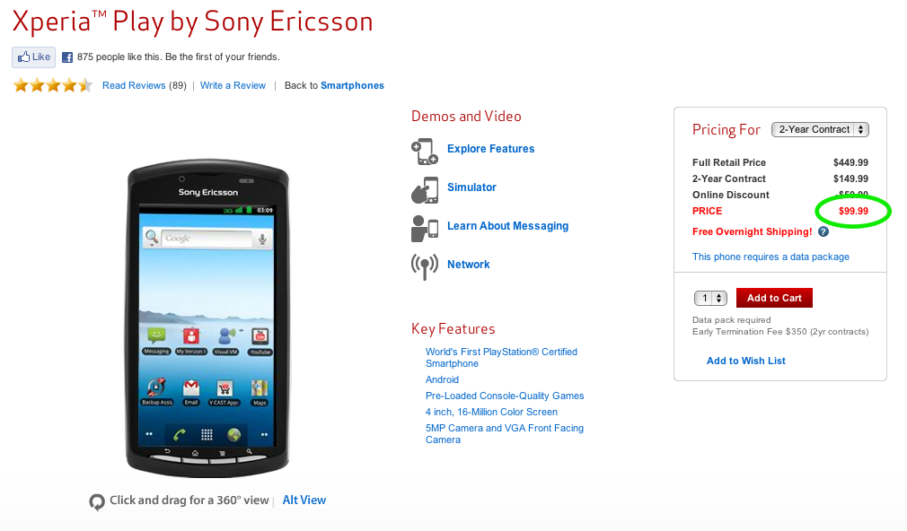 Verizon’s Xperia Play hit stores May 16th for $199, but in just two months the device is already seeing a $100 price cut. The Xperia Play is now available on Verizon for just a mere $99! While users like to game on their smartphones, perhaps a smartphone devoted to it just isn’t sitting right. If you’re interested, we suggest you take advantage of this now.