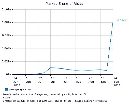 The traffic spike was most likely helped out by Google’s blunt advertising for Plus. Experian Hitwise’s numbers don’t include mobile users (which probably isn’t much) or users from Google’s black bar. To compliment the amount of visitors Paul Allen has also been throwing out their that the social network is now up to 43 million users. (via ReadWriteWeb)