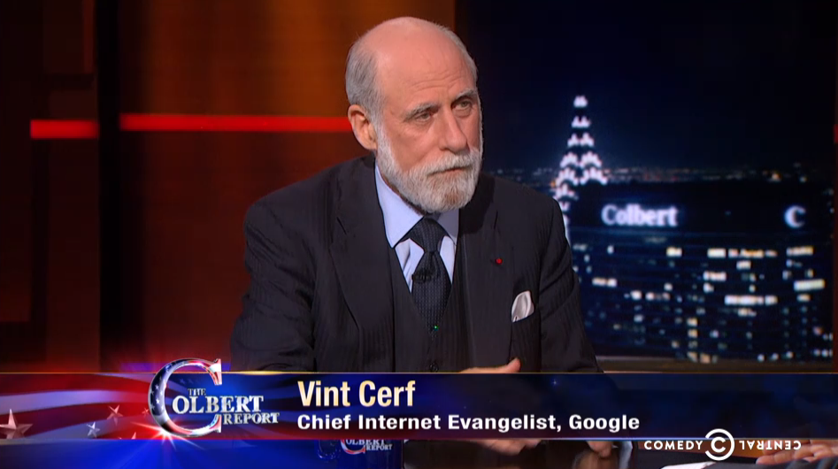 For more from Vint Cerf and Google’s role on shaping Internet policy, see the Google VP and Chief Internet Evangelist’s recent interview with Stephen Colbert on Comedy Central as seen in the shot above.