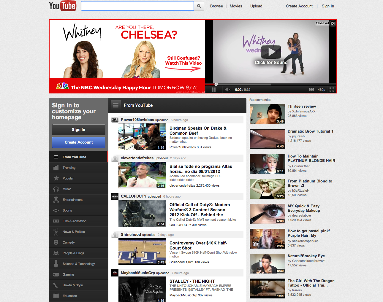 YouTube's latest interface that displays video channels upfront versus individual uploads.