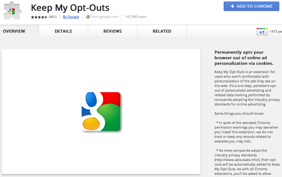 “Keep My Opt-Outs is an extension for users who aren’t comfortable with personalization of the ads they see on the web. It’s a one-step, persistent opt-out of personalized advertising and related data tracking performed by companies adopting the industry privacy standards for online advertising,” wrote Google on the Chrome webstore