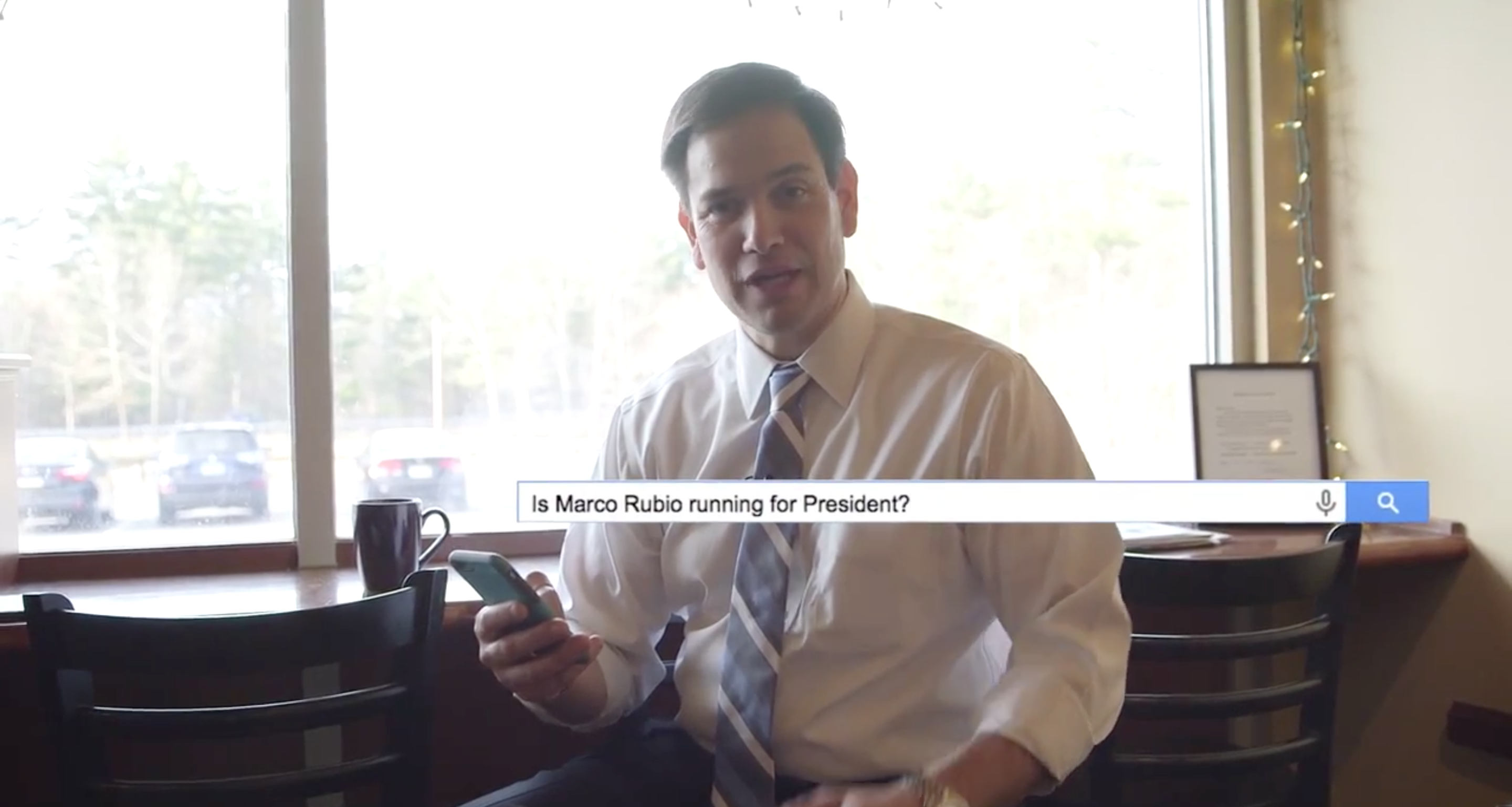 Like the autocomplete-based “Google Feud” game that hit the web a few weeks ago, Rubio used Google’s crowd-sourced search term suggestions to determine some of the most popular questions about himself, such as his nationality, religion, reasons for running for president, and whether he’s a twin, and answered them in a one-minute video.