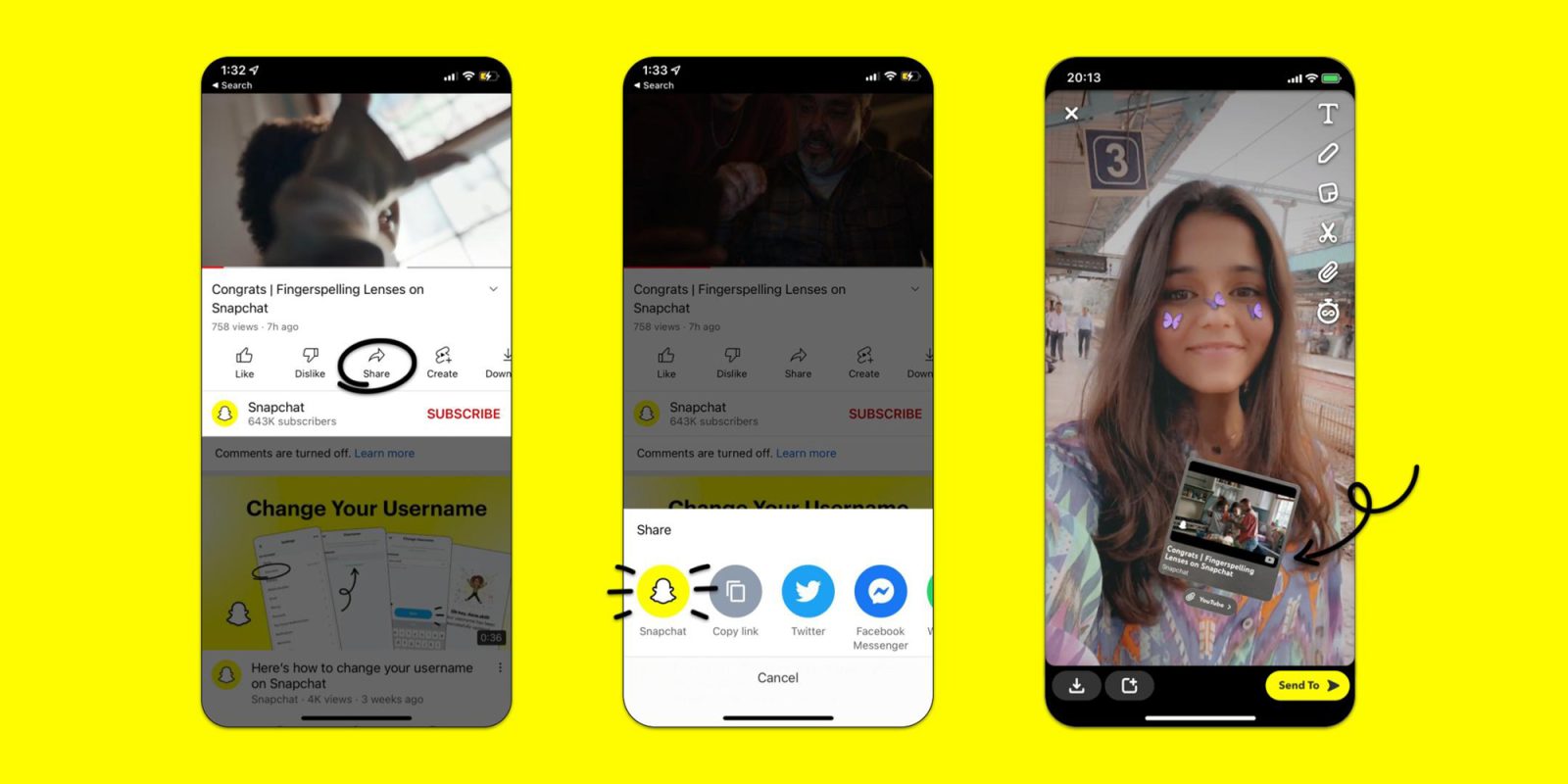 Expand Expanding CloseAfter adding the ability to share your current YouTube Music playlist or track, you’re now able to directly share YouTube videos to Snapchat for Android and iOS.