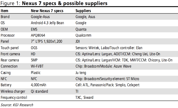 A successor to the Nexus 7 was a no-show at Google I/O this year, but that doesn’t mean a V2.0 of the tablet isn’t coming soon. Back in May, we reported that according to a KGI analyst, Google was planning on announcing the Nexus 7 2 at I/O with a full 1900×1200 HD display, a lighter and thinner body, with a Snapdragon 600 processor, 4Ah battery and both front and rear (5MP) facing cameras. The second version of the Asus tablet was also slated to be the first device with Android 4.3 on it.