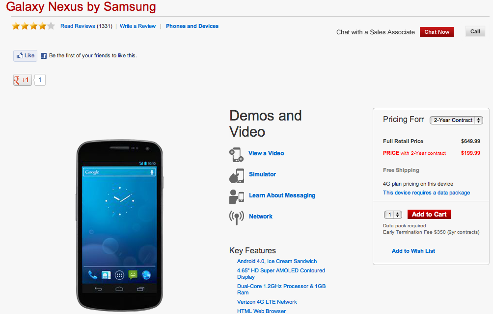 The carrier’s internal MAP documents from last week suggested a new asking price was coming sooner rather than later, and it seems Verizon was quick to match Sprint’s newly announced price tag for the device. The attractive savings also levels the flagship Ice Cream Sandwich smartphone with Verizon’s other high-end handsets such as the Droid 4 and LG Spectrum. However, Verizon’s off-contract price for the Galaxy Nexus is still fixed at $649.99.