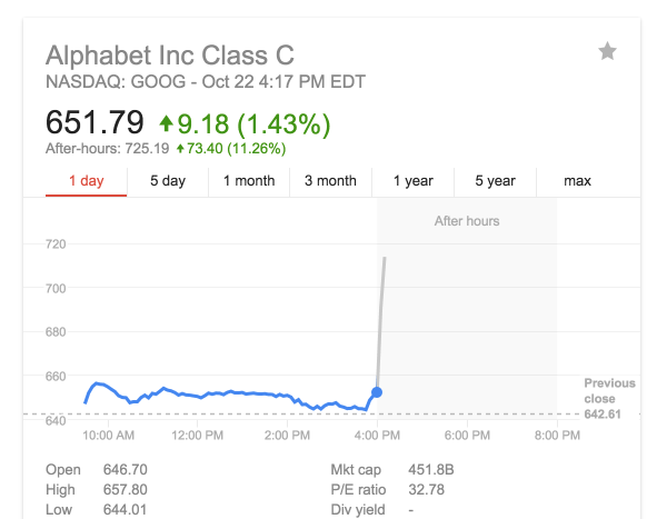 Alphabet has today posted its Q4 2015 earnings and fiscal year 2015 results. The company reports revenue of $21.3 billion, which is up 18%. Net income for Q4 2015 was $3.97 billion. Meanwhile, both Alphabet Class A stock and Class C stock is soaring in after-hours trading, briefly giving Alphabet the top spot as most valuable company in the world.