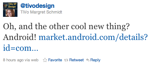 TiVo and non-TiVo customers can now experience DVR on their Android-powered devices with the first—and free—TiVo application. Vice President of TiVo User Experience Margret Schmidt tweeted the release of the new app early Jan. 6.