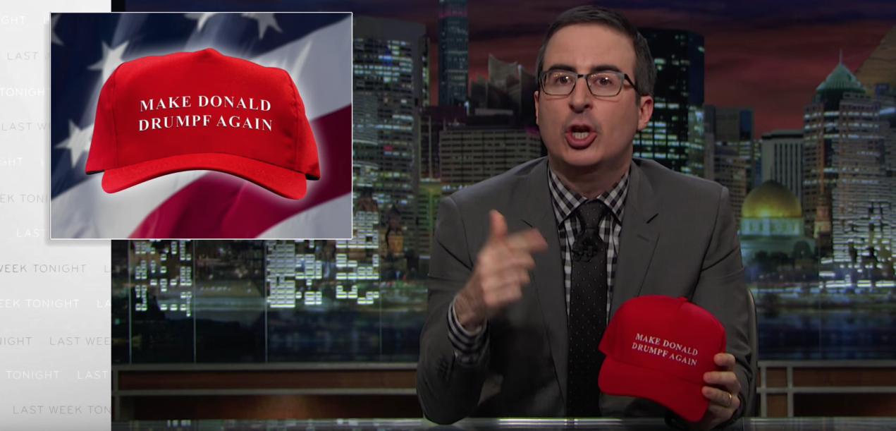 In case you missed it, John Oliver took 20 minutes on Last Week Tonight to roast Donald Trump, finishing the skewering with mentioning that one of Trump’s ancestors actually changed the family name from “Drumpf”. Tying this in with his opinion that “Trump” is little more than a brand (and that it’s that brand that has given him this much success thus far), Oliver says that we have to decouple the man from the name so that we can see Donald for who he really is.