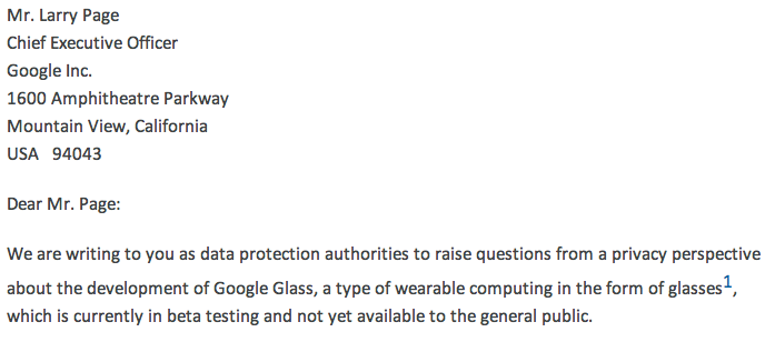 Data-protection authorities in five countries raise Google Glass privacy concerns with the company