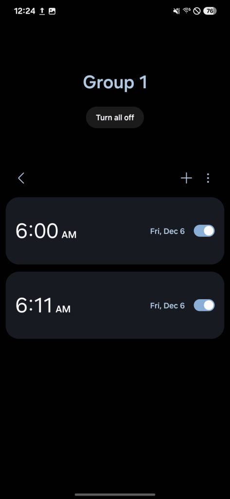 Samsung’s Clock app can now set the same volume across all alarms while also being able to create groups of alarm times that can be turned off or on all at once.