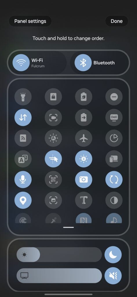 Create the quick panel layout that’s right for you. You can tap the pencil icon at the top of the quick panel to enter Edit mode, then move buttons and controls up and down to match your preferences.