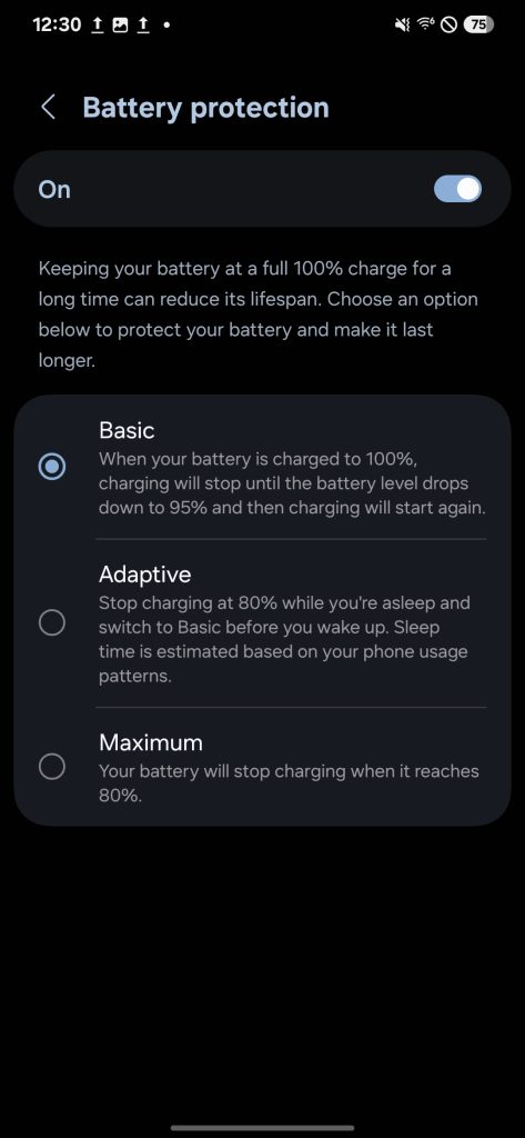 Battery protection settings can now limit charging at different intervals. Where it previously could only be limited to 80%, it can now stop at 80%, 85%, 90%, or 95%.